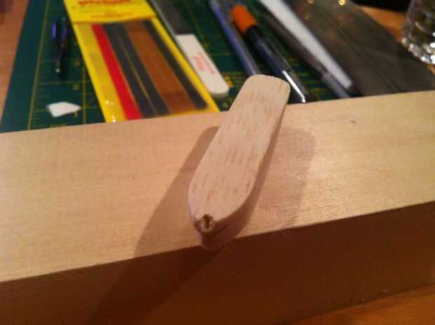 Comenzar con un paquete de madera de balsa de la tienda y algunos bajo láminas delgadas de madera para que los más finos elementos detallados que requieren fuerza. No utilizo cualquier referencias gráficas para este modelo en particular sé galeones bastante bien, por lo que no se trata de una representación históricamente correcta. Para algunos de los detalles más finos donde me temo que el material podría romperse al lijado o presentación a estas mediciones pequeñas, pongo unos 20 segundos de secado el pegamento en una superficie plana de la hoja girar a otra pieza que colocar en la parte superior a 90 grados para que los granos se cruzan y apoyan unos a otros.