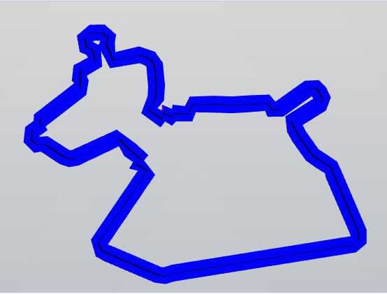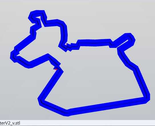 Nota: las imágenes azul son del software Axon2 que uso para generar la trayectoria de herramienta (gcode) que realmente controla la impresora 3d. Puedo usarla para escuchar lo que el resultado con ser sin tener que imprimir el objeto físico. Había ajustado la distancia entre puntos hasta que me dieron espacio en blanco en las secciones de oreja y cola. Dependiendo de la configuración de impresión y ajuste de impresora, el objeto impreso físico puede no parecer exactamente como la trayectoria mostrada (gcode).