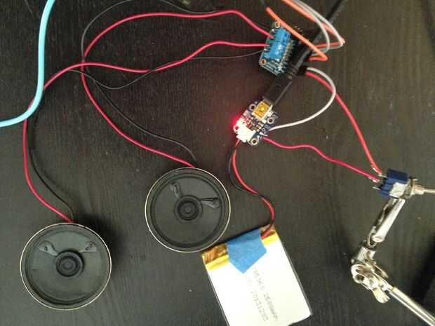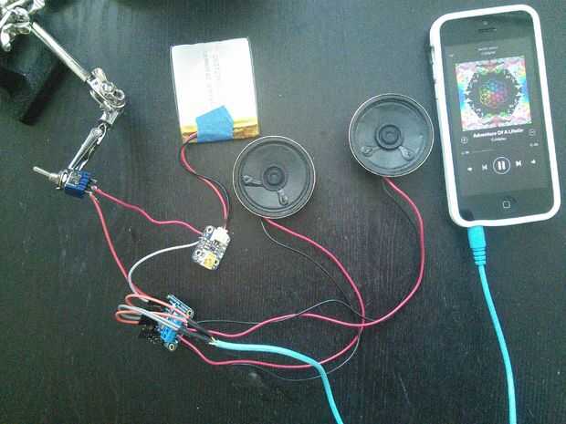 Ahora conecte la batería de lipo y encienda los parlantes y conectar el audio al teléfono para probarlo...