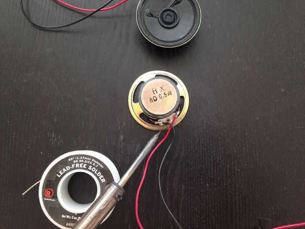 Comience soldando cable pan de embarque a los terminales de altavoz