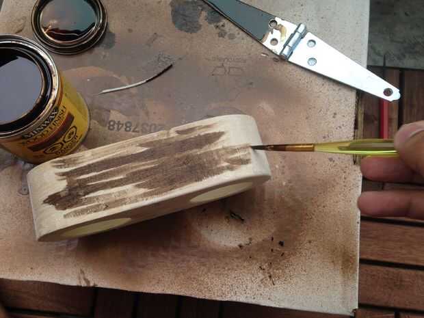 Ahora una vez listo con lija, otra de las ventajas de la utilización de madera del filamento es que usted será capaz de manchar su parte impresa 3D para darle ese aspecto rústico de madera.