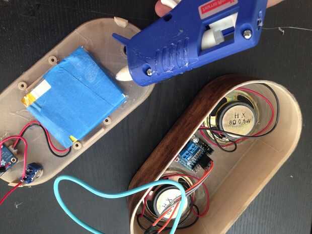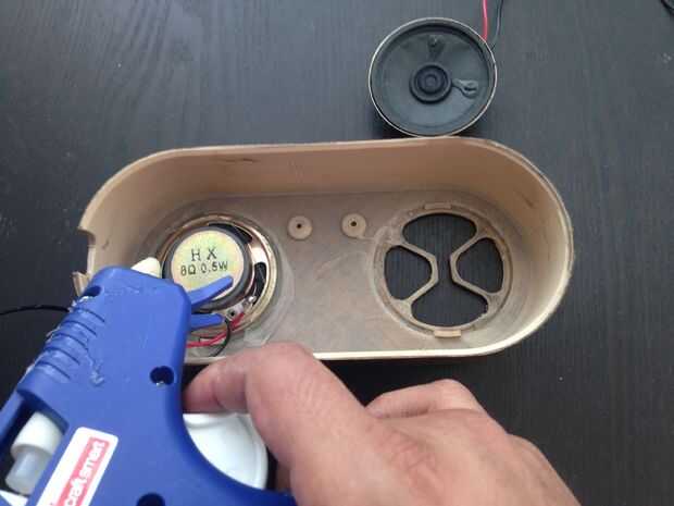 Ahora añadir los guardias hablar a la parte impresa 3D y pegamento caliente entonces el altavoz en la parte de la base como se muestra en la foto de arriba.