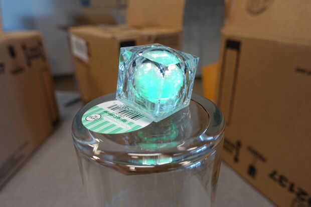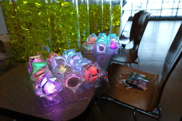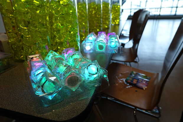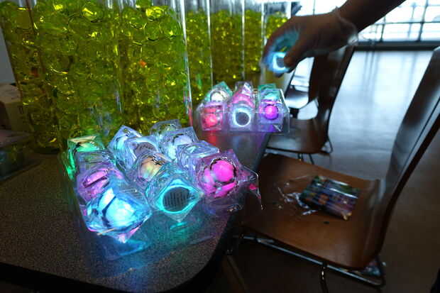 Nos recogió estos cubitos de led para iluminar la muestra. Tienen un montón de diferentes configuraciones pero intermitente era la elección obvia.