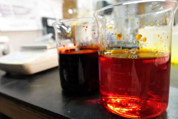 Naranja era un poco más difícil porque la comida para colorear sólo viene en amarillo (o cáscara de huevo) y rojo. Comenzamos mezclando 400 mL de cada uno juntos esperando una mezcla 50/50 nos daría naranja pero terminó necesidad de añadir otros 300 mL de amarillo para aclarar en mi opinión estaban todavía a oscuras. Mi consejo es empezar con una gran cantidad de amarillo y lentamente agregue rojo hasta obtener el color naranja que desee.