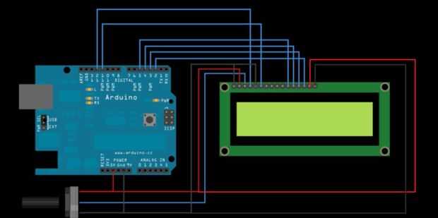 Si usted es nuevo a LCD y quiere comprobar el tiempo que está trabajando su LCD conectar la pantalla LCD con arduino según la conexión en la imagen y abra el software de arduino en tu PC. ir a archivo > ejemplos > liquidcrystal > Hola mundo y subir el sketch a la placa arduino. Si ves Hola mundo en pantalla entonces el lcd funciona perfectamente pero si no se muestra nada en la pantalla LCD sólo ajustar el potensio y su LCD empezará a trabajar.