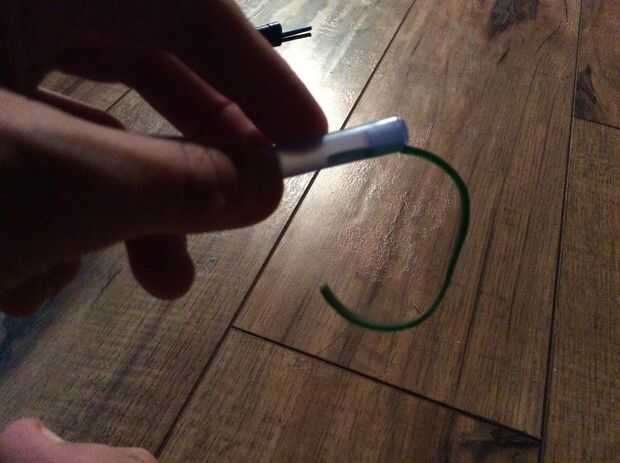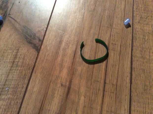 Bueno ahora basta cortar la goma en un lugar de manera que se convierte en una línea recta en lugar de un bucle. Ahora que tienes corte desea poner aproximadamente 1/4 pulgadas de la goma en un extremo y poner la tapa en él. Debe verse así. Después de poner me di cuenta que no estaba alineado con el agujero. Así que asegúrate de que hacerlo. Tomará algo de trabajo pero después de usted ponga el otro extremo de la pluma y ponga la tapa en que. Usted puede poner la tapa en si quieres no importa.