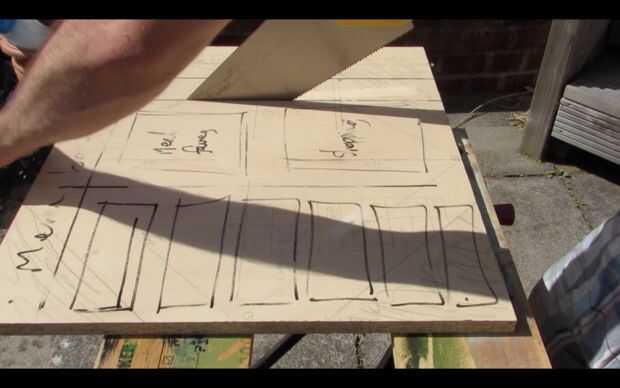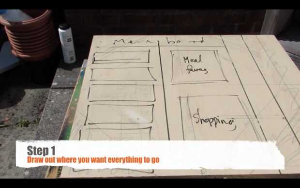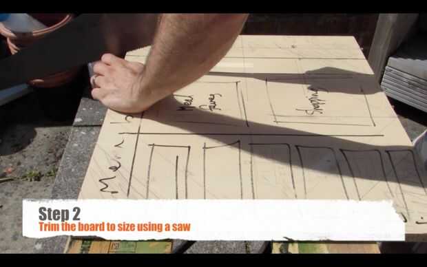 Medida como ancho y alto que desee el tablero del menú y use la sierra para cortar a tamaño.