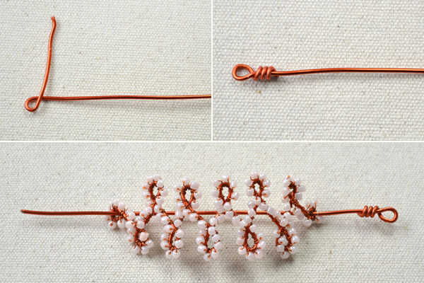 1 º cortar cerca de 12cm alambre de aluminio, hacen un lazo mucho unos 3cm de un extremo, envolver el alambre de aluminio de 3cm alrededor del alambre ya varias vueltas;
