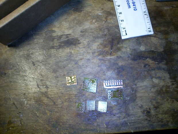 Ahora para la aguafuerte, utilizo cloruro de cobre. Mezclar 2 partes cobre oxido (negro) y ácido clorhídrico 1 parte. He estado usando el mismo grabador durante el último año o así. Mayoría de las veces no tiene nada que ver, pero uso un borboteador de aire para acelerar el tiempo de grabado. Además, al utilizar el material, usar guantes y hacerlo fuera o en algún lugar no le importa conseguir verde manchas.