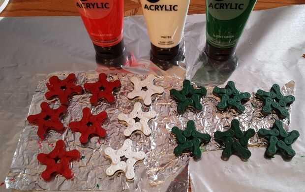 La pintura acrílica limpiaron con agua y era fácil trabajar con. Algunos colores cubren mejor que otros. No estoy muy contento con cómo resultaron los adornos con pintura acrílica. Déjeme por favor saber si usted tiene sugerencias para la mejor pintura a utilizar.