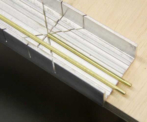 Coloque el tubo en la ranura de la caja de ingletes y corte en la línea de marca utilizando su inglete hobby segundo más cercano Sierra.