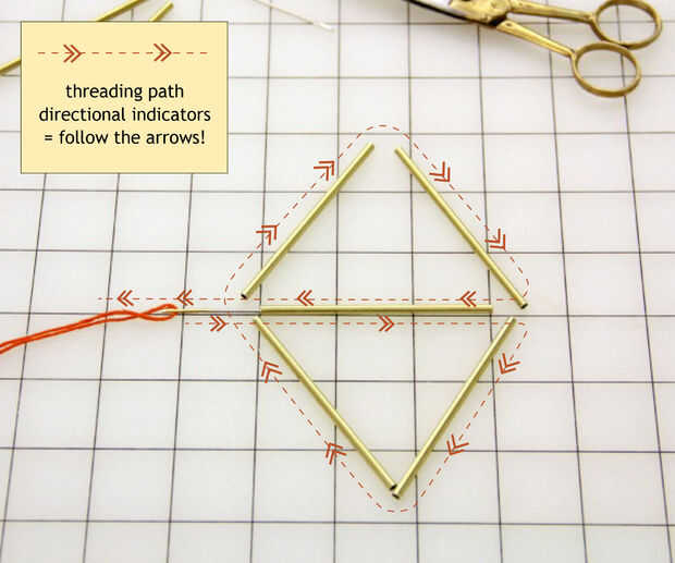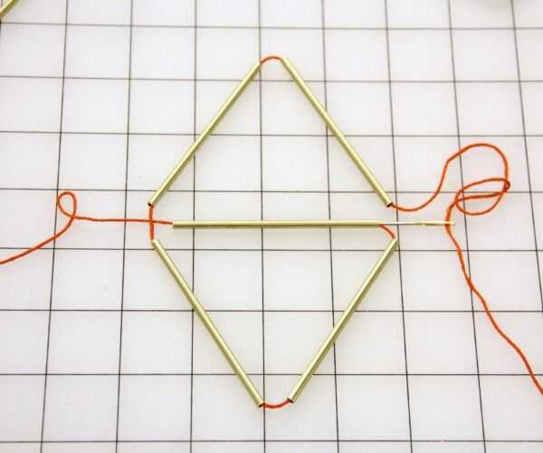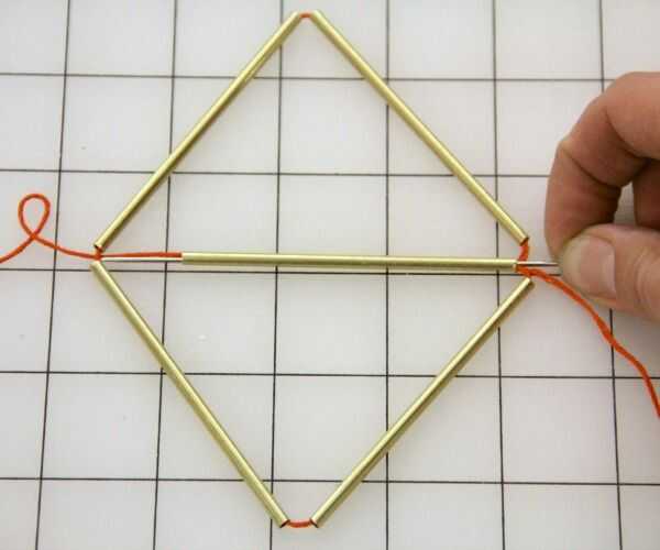 Una vez a través, tire dos hilos un poco para apretar cómodamente todas las piezas.