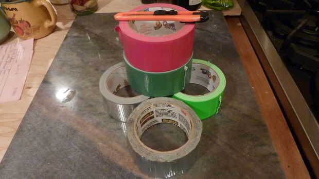 -Cinta aislante (usé gris, coloreada cromo, rojo, verde oscuro y verde claro) no importa qué cinta de color, sin embargo, gris salva tus cintas de colores.