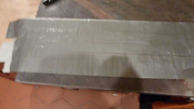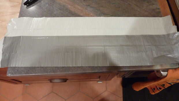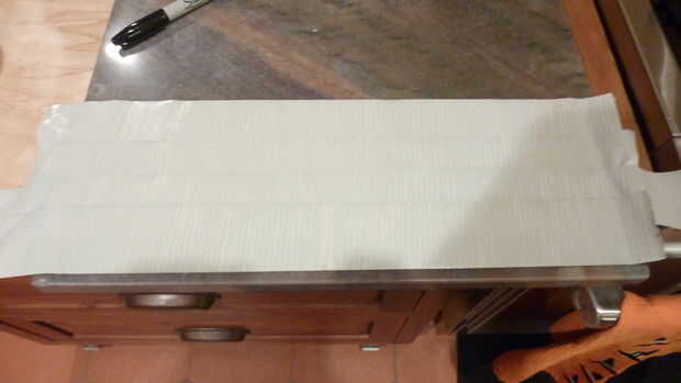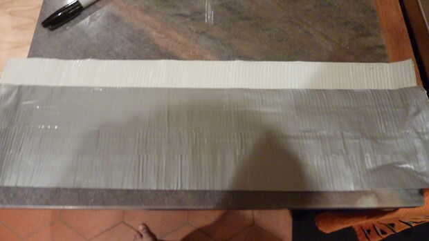 Ahora, usted va a eliminar la viscosidad. En primer lugar, tomar a la tela y dale la vuelta, así que el lado pegajoso hacia arriba. Entonces, la capa como se hizo antes, para cubrir completamente el lado pegajoso. Línea de bordes tan exactamente como sea posible, sino que si no lo hacen, nosotros lo fija ese siguiente paso. Continuar y hasta que se hace. Tienes que ser aseada!!!