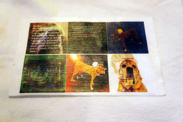 Después el marcador negro tenía un montón de tiempo para secar, pintado cada uno de los 6 cuadros con Mod - Podge y les dio tiempo para secar. Usé la paja para evitar que se pegue la cartulina debajo de ellos. Pinté el Mod - Podge sobre la hoja de la tela al mismo tiempo. Usted puede darle tantas capas como quieras. He seguido las instrucciones en la parte posterior de la botella Mod - Podge para la imagen impresa. Quité el papel después de que el Mod Podge estaba completamente seca. Me gustó la manera que mod-Podge dieron a la tela un aspecto de lienzo. Algo así como un óleo lienzo. Después de secado el Mod - Podge pegué todas las tablas usando el Mod - Podge.