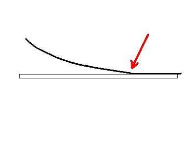 Quite las abrazaderas. Levante el extremo de la lámina donde estaban las pinzas. Quitar el resto del periódico. Mientras sujeta la lámina hacia arriba con una mano, utilice la palma de la otra mano para baje el laminado suavemente en la madera donde el laminado se une con la madera contrachapada. Ver la flecha roja. Esto es así hay ningunos bolsillos de aire atrapados en el laminado.