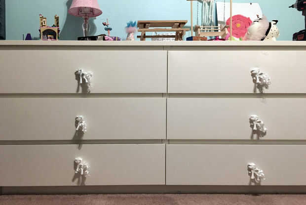 Último paso encontrar unos tornillos que yo toque el plástico y son lo suficientemente largos para sobresalir de la cara del cajón de 3/8" que le dará más espacio libre a morder el juguete y todavía el potro de cierta profundidad sobre el aparador.