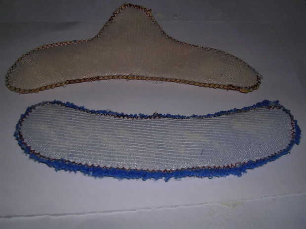 Una vez las pastillas habían sido cosidas colocó boca abajo en una hoja de papel y había rociado con una capa de adhesivo en aerosol.