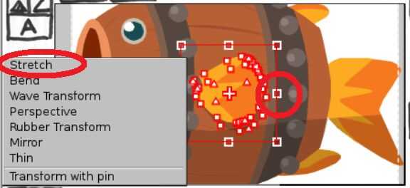 La manija del lado derecho del marco de selección, haga clic en > haga clic en [Stretch]. Ahora se cambiará la forma según el movimiento del ratón. Haga clic en el botón del ratón cuando la forma se convierte en la forma deseada.
