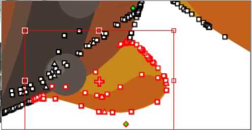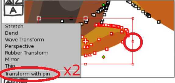 Cuando la [transformación con pin] está activa, los puntos de control cerca del borde de selección no mueven tanto. El resultado de la transformación será suave.