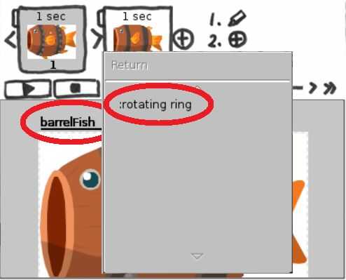 Haga clic en el texto en negrita "barrelFish" > haga clic en [: anillo giratorio]