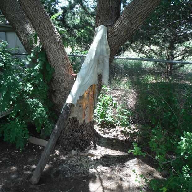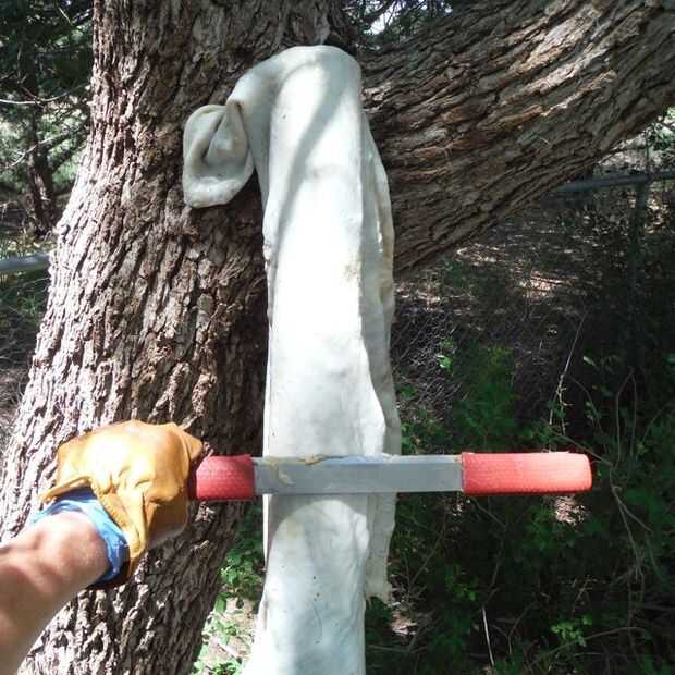 Haciendo una superficie de trabajo adecuada para una piel que raspa no es demasiado difícil. Hay dos métodos comunes; un haz vertical y una viga de cintura. El haz vertical (que utilizo, en la foto) es un registro o un registro de media (quizás de 4 a 8 pulgadas de diámetro o un trozo de tubo de pvc del mismo tamaño y casi siempre un curtidor es alto) apoyado contra un árbol con la piel sobre la parte superior. El otro es un registro o una pipa de las mismas dimensiones con dos patas en un extremo para que un extremo se apoya en el suelo y el otro es sostenido a la altura de la cintura por las piernas. Cada método utiliza músculos diferentes al raspado, por lo que es realmente hasta que uno se siente mejor.