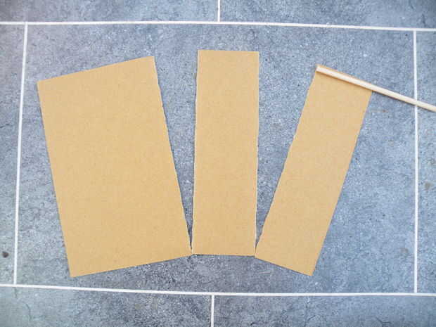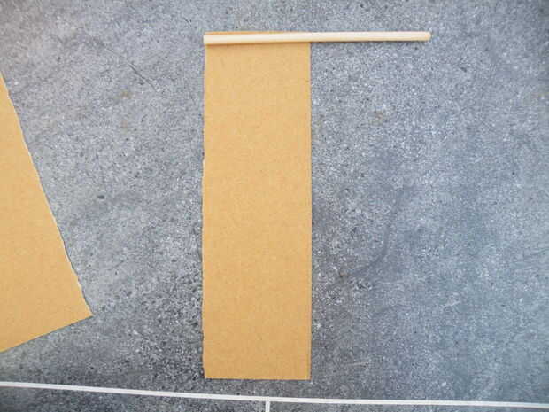 Las hojas se rasgaron en cuatro tiras que fueron convenientemente el ancho adecuado para cubrir la mitad un trozo de espiga y luego en pequeños rectángulos que envuelven la espiga una vez.