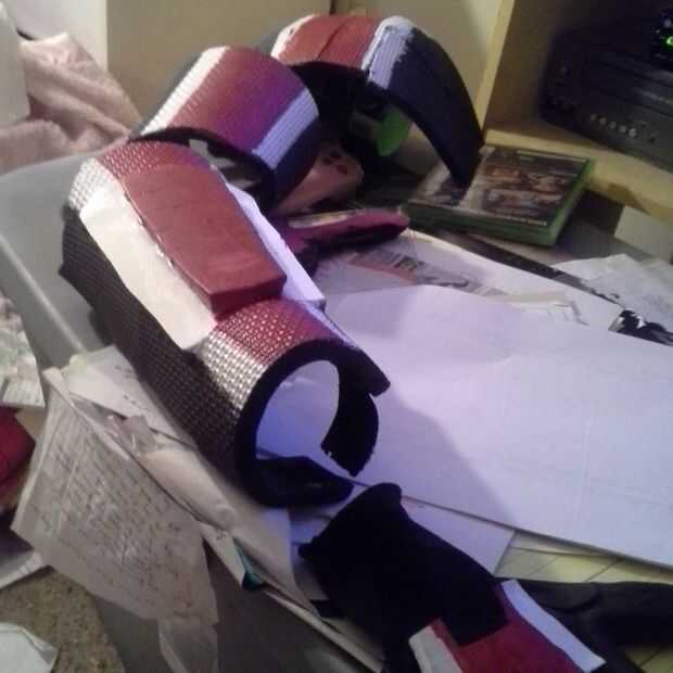 EVA Foam es lleno de diminutas bolsas de aire poco. Por esta razón se utiliza como acolchado para los pisos. Por lo que al pintar, se puede ir directamente a la pintura espuma cruda. Esto es donde el pegamento blanco y Plasti Dip entra en juego. Plasti Dip es un caucho de aerosol que se llene los bolsillos, así como proporcionar una superficie para la pintura agarrar en. Así que usar un par de capas de cola blanca mezclada con agua (50/50 o hasta que es sobre la consistencia de la leche) y luego después que está todo seco, comenzar con unas pocas capas de Plasti Dip. Esto le dará una superficie firme para comenzar la pintura!