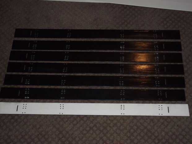 En este paso hice los imitación madera listones ciegos y jugó con ellos un poco había les había curvado y envuelto alrededor de mi cuerpo para tratar de ver la longitud para que tendría que cortarlas. Tenga cuidado de no hacer un pliegue por exceso de flexión. Utilicé el más largo de la armadura del pecho y el más corto para el casco. Lo hice porque los listones tienen ranuras cortadas ya en ellos y no quería agujeros aparece donde no quiero.