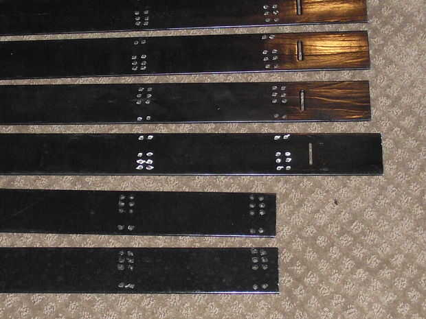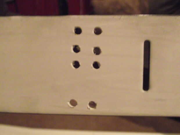 Medir las distancias iguales del centro que he marcado en lápiz donde necesitaba hacer y una vez mirado derecha como un listón primero a utilizar como plantilla para el resto que agujeros apilados y perforados para múltiples listones al mismo tiempo. Utiliza cuatro columnas para un aspecto simétrico agradable que sostiene la armadura juntos muy bien, pero no tenga miedo de hacer más que sólo necesitará más de amarre. Esencialmente se necesitan al menos tres columnas; dos para sostener los extremos y una columna para el centro.
