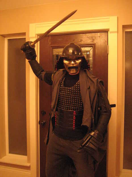 Coloqué la pantalla Samurai en una sala de teatro dedicado que cuenta además con otros decoración oriental.