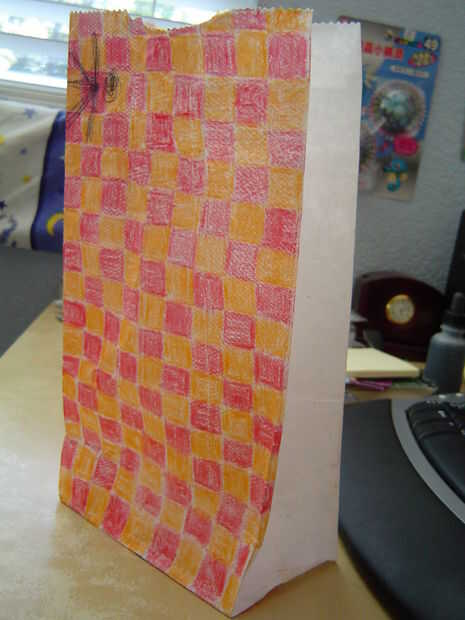Todo lo que necesita es un instrumento de dibujo; puede ser un lápiz, marcador, o lápices de colores (he encontrado un par de lápices de colores en un restaurante al aire libre) y un pedazo de basura que es legible para el material en particular está marcado en. Marcadores de plástico probablemente haría, pero estoy usando los lápices de colores y una bolsa de papel blanco, que encontré en un restaurante al aire libre en San Francisco.