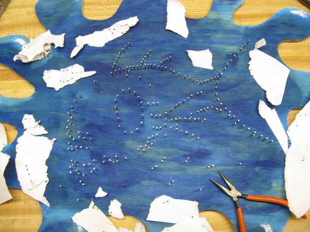 Esta es la diversión paso - sólo rasgar para arriba el papel que has clavado en!  Tenga cuidado de no sacar alguna de las uñas.  Puede tire hacia fuera de cualquier bits obstinados con unas pinzas, pero los más pequeños no será notables una vez que termines con la parte de la cadena.