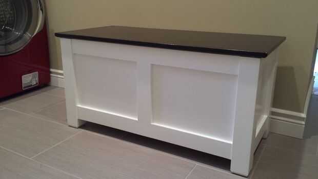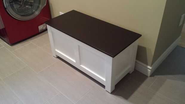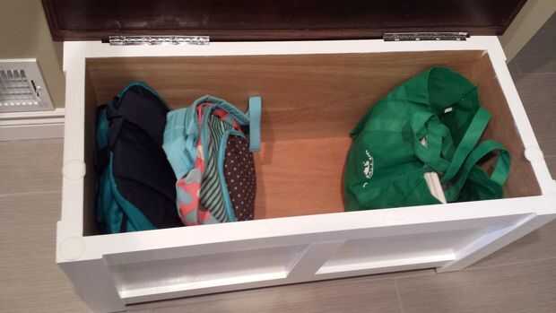 Con la terminación de la renovación, nos damos cuenta que necesitamos un banco de almacenamiento donde los niños pueden sentarse a poner sus zapatos y un lugar para guardar las mochilas y otras cosas que me traen, que no tengo ni idea de qué y por qué...