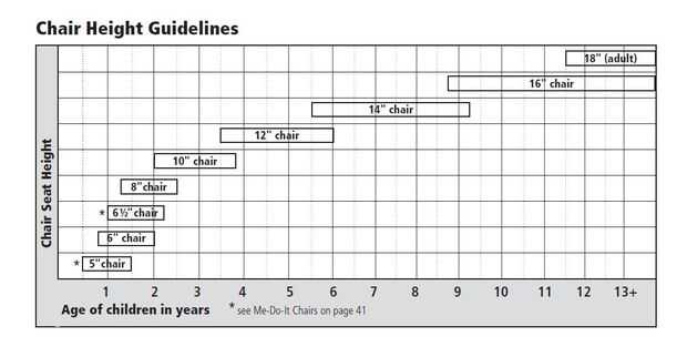 Nota: la madera utilizada fue de 18mm, menos 3/4" densamente, usando el sistema métrico de medición para los últimos 2 pedazos más cortos es más fácil de calcular todo lo necesario para asegurar el ajuste correcto para el cuadro. Por favor compruebe el espesor de la su madera y hacer un ajuste adecuado para la dimensión de corte. Además, otra dimensión se basa en el espacio que tenemos, podría ser demasiado grande o pequeño para su espacio. El factor más importante es que el 18" altura de acabado. Los niños más pequeños puede ser que necesite un banco más bajo, así que os adjunto la carta que encontré en la internets para la referencia. (communityplaythings.com)