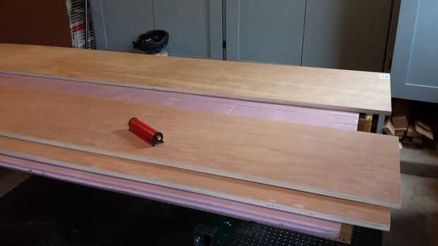 Es una buena idea de los paneles de madera contrachapada de la arena en este punto, ya que son todavía planos. Cuadrícula sólo 120 y 180 fueron utilizados.