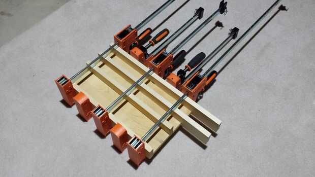 Corte 2" cuadrado y pegado en las piezas de forma de L.