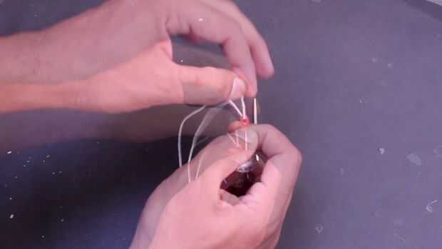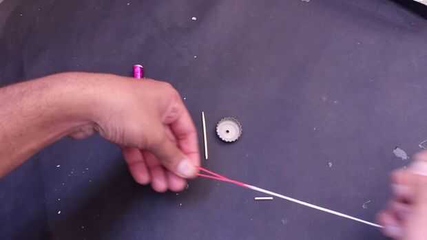 1. tomar el hilo y pasar la goma entre el hilo