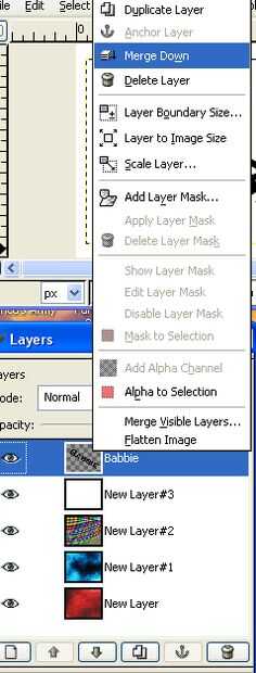 Luego fusionar las capas del fondo del mismo modo para que el diálogo de capas se ve así: