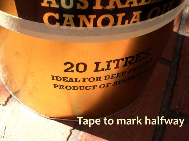 Cortar la lata de aceite grande 20 litros en la mitad.