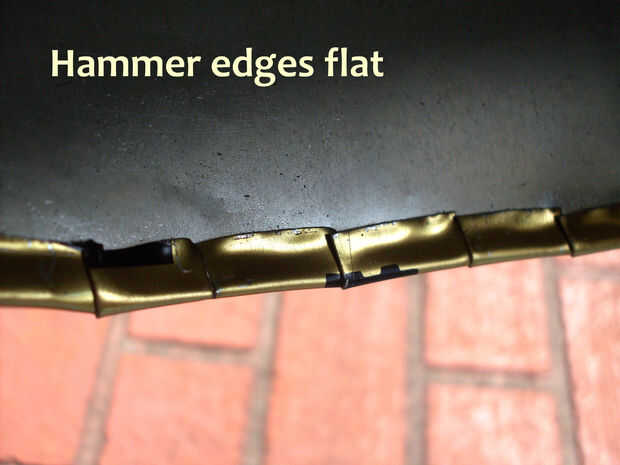 Cortar un círculo en la abertura y presione bajo borde luego martillo plano,