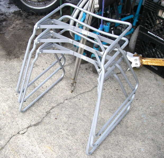 Tirar los asientos en la papelera de reciclaje de plástico y añadir las bases a una torre detrás de los contenedores.