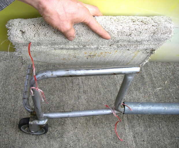 5. Corte las patas de una silla de Ikea, soldada a la parte delantera y atado una cinta de la alfombra sobre la que.