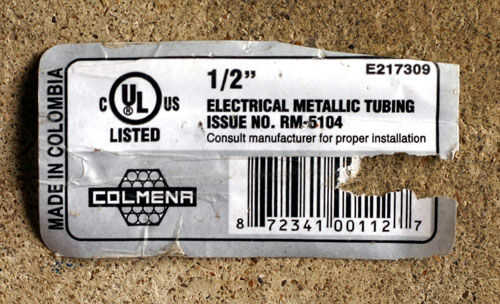 -1/2 pulgada EMT conduit, disponible en 10 o 5 pies de largo (también disponibles en 3/4 de pulgada de diámetro)