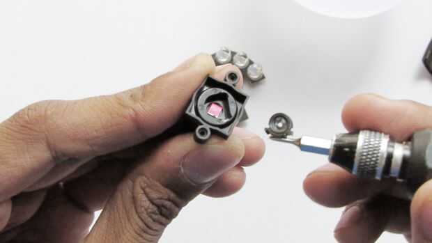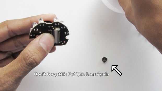 5. en la parte del lente quitar las lentes de colimación