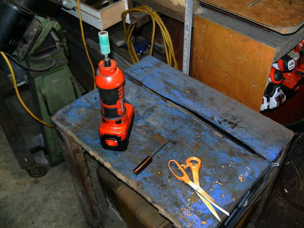 Una Dremel con un tambor de lijar que trabajaría aquí, o simplemente ir en él con un cuchillo. Pero eso sería más trabajo. Originalmente estaba rodando para una perforación ángulo contrario en el agujero del pulgar.