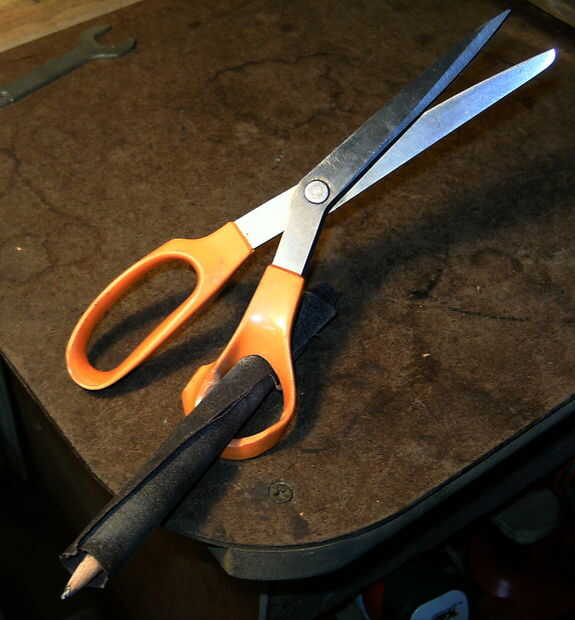 Por ahora las cosas han mejorado significativamente, pero quiero alisar las superficies rugosas que he hecho. Esto es obra de mano delicado aquí. Envuelve un trozo de papel de lija alrededor de un lápiz, y utiliza como mi instrumento de destrucción.