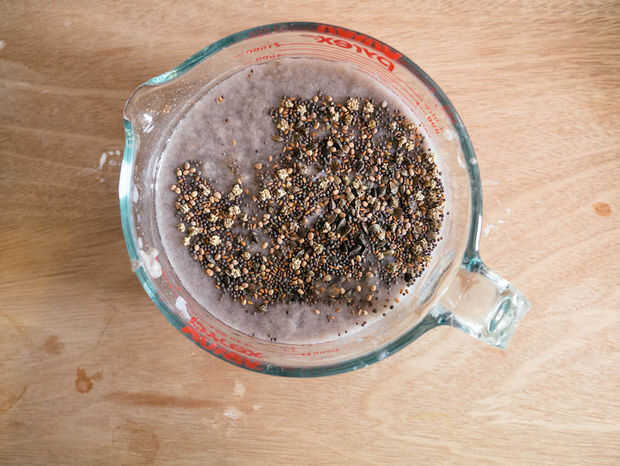 Añadir las semillas a la mezcla de la pulpa y mezclar. Para hacer nuestro utilizamos una mezcla de semillas de flores silvestres, pero puede utilizar cualquier tipo de semillas que te gusta, como semillas de hortalizas o hiedra. Hay no hay medida exacta para la cantidad de semillas que usted necesita para utilizar, pero utilizamos alrededor de 1/4 taza de semillas a 4 tazas de la mezcla de pulpa de papel.