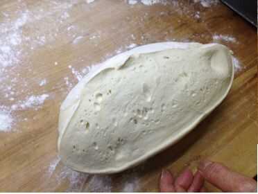 3. poner la masa de la harina acabada sobre la capa de harina.