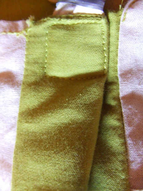1. Conecte las dos manijas juntas para hacer uno largo uno y colocar a los lados. Doblé a la tela del lado extra sobre la correa para incluir durante la creación de un pliegue.